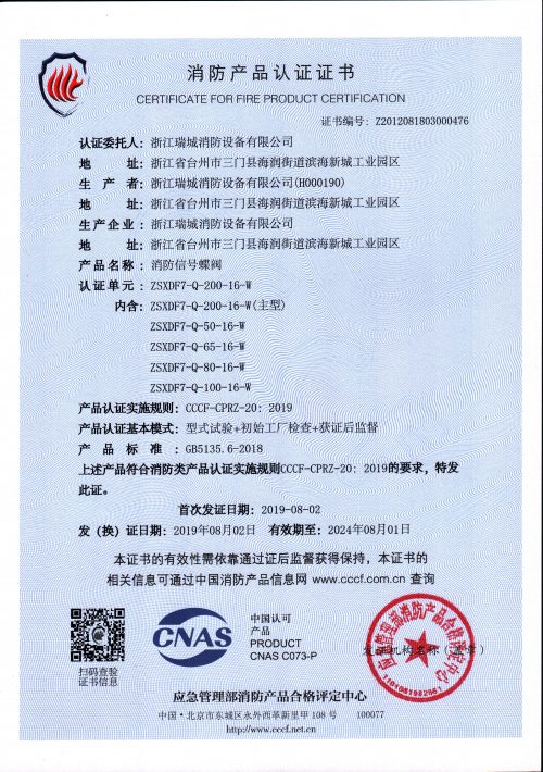 产品标准:GB5135.6《自动喷水灭火系统第6部份:通用阀门》