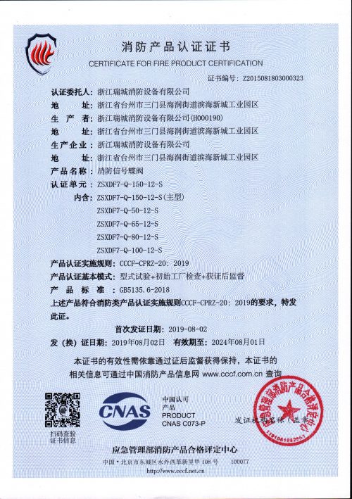 ZSXF信号蝶阀是自动喷水灭火系统中的配套附件之一,作为自动喷水灭火系统的水源搬运控制阀门,具有阀位显示信号,该信号可接至控制中心实时监控,以免造成误关,提高系统的可靠性。是消防给排水管路的控制阀门。