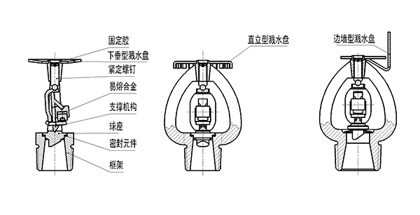 (1)由铜合金框架、易熔合金元件、支撑元件、密封件、喷头座、螺钉和溅水盘等装配而成。